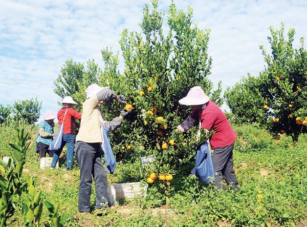 本报讯 山顶林戴帽,山下稻米香;山中果飘香,山间路缠腰。时逢孟冬,正是芦柑采收季节。在仙游县大济镇政府西北部5公里的坑北村翔宫山上,一大片绿油油的芦柑园里果实累累,粉红的芦柑挂满枝头,在早晨阳光照射下青翠欲滴。许多员工在果园里忙碌着采收芦柑,有拉下树枝剪摘的,有挑着芦柑穿梭在果园里。虽然处于冬天季节,大家汗流浃背,不顾身上的汗水,有的分拣装袋,有的过磅装车,个个忙碌着手中活,装满芦柑的车辆沿着盘山公路徐徐下山运往全国各地市场。