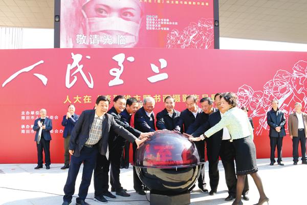 本报讯 翰墨写春秋,丹青绘英雄。12月1日上午,“人民至上”——人大在“疫”线抗疫主题书画摄影作品展在市博物馆开幕!240多件抗疫主题作品,记录下了抗疫一线工作者的感人事迹,传递给观众温暖坚强的力量。