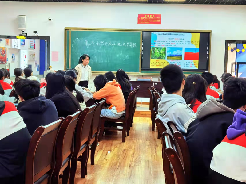 活动中,市骨干教师培养对象、二十五中张淑英老师为大家带来新教材选必二地理《自然环境的地域差异性》。“生活中处处有地理,学习对生活有用的地理”,是授课教师的教学理念。教学中,张老师的教学紧密联系学生生活实际,从校园植物观察到校外风景游览,视觉空间不断打开,学生的探究欲望得到激发,课堂气氛轻松愉悦。在探究规律环节,学生思维活跃,教学重难点得到突破,学生思维能力得到一定提高。本节课以研学活动素材导入,以分组学习为组织形式,以设计精品旅游路线为落脚点,形式新颖,很接地气,得到听课老师的好评。但在时间分配、教材深入解读、小组活动、导学案使用等方面还需要细作安排,等等,名师们的点评高屋建瓴,让人受益匪浅。