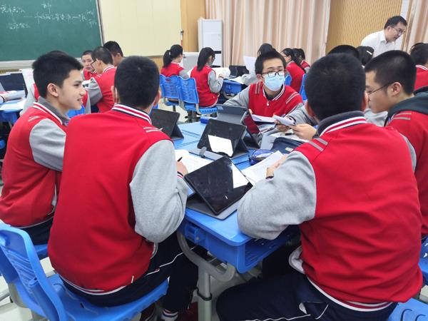 打造高效课堂以课前、课中、课后这几个方面去推进。课前我们一般以年段备课组为单位进行集备。在集体备课过程中我们群策群力。因为每个教研组及以下备课组中,都有年轻的老师在信息2.0技术方面勇于探索,但教学经验欠缺。而老教师则相反,这样他们形成互补,备课组就可以高效完成。备完后发送到备课组中,就可以共享,达到高效备课的效果。在课堂上,老师更多的是作课堂的引导者。课中通过本学科特别要求,创设更多的情境。如生物学科,真实情境导入后,我们安排一些带有科学思维科学探究的任务之后,更多地把时间交给学生。让学生们相互促进相互启发,让学生更自主地创建他们的知识体系。最后由老师来总结提升补充。课后的检测利用信息2.0技术,依托纳米智慧黑板设备进行点对点的个性化指导。智慧课堂的推进反响较好,特别是对学生不会的地方可以推送给他们,他们就能够很好地查缺补漏。