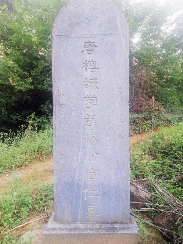 仙游梁山杨氏族谱明确记载:杨宣仁从陕西华阴入闽,授榕学録。退休后,因黄巢举事,因卜所安,由涵江而入仙游开族于梁山之麓,其卒后也入葬梁山之麓。梁山之麓,今为仙游县度尾镇剑山村杨泗宫后山的凤山丘陵。在凤山山上,杨宣仁墓葬尚在。其墓地前后20米,左右10米,经认定为:唐古墓葬。1992年8月,列为仙游县文物保护单位。立石碑一方,碑刻:“唐榕城学録杨公宣仁墓”,背面碑文概述杨氏得姓和梁山始祖宣仁公入闽情况。