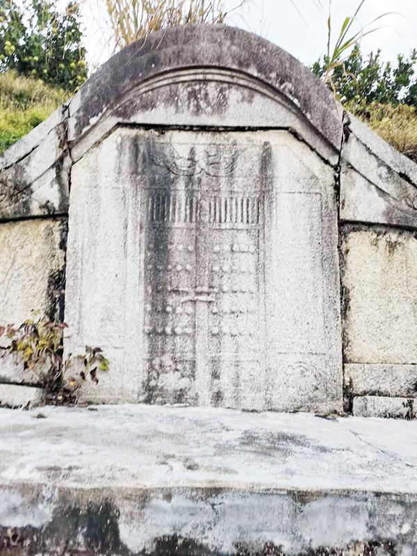 据《仙游梁山杨氏族谱》记载:“系梁山杨氏第十三代裔孙,字尚享,号世元。官拜宋开封法曹。生于宋孝宗乾道八年(1172)壬辰,卒于宋宁宗嘉定十年(1217)丁丑,寿四十六。妣本里郑氏,生一子旺。”杨乾庵墓,也是在梁山之麓郁郁葱葱的文旦柚树林中。其墓东西长度30米,南北宽度20米,为七级石级墓,神道碑刻有:宋开封法曹乾庵杨公墓。背后碑文记述杨乾庵生平、墓室格局。整座墓犹如凤字型,古朴典雅气势雄伟。1992年8月,以宋古墓葬,列为仙游县文物保护单位。而这座墓,令人不解的是无字碑。这座无字墓碑上的图案疑似是佛门寺院大门的图案。墓碑与墓基石料颜色显然不同,一眼就可以辨别是两个不同年代的材质。据梁山杨氏族谱记载,该墓曾于清康熙五十六年修葺,根据现场勘查:无字墓碑,系原古墓葬石料材质。