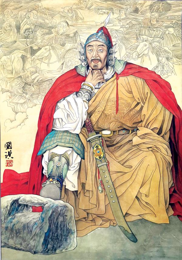 戚继光横戈马上行 朱成淦/画