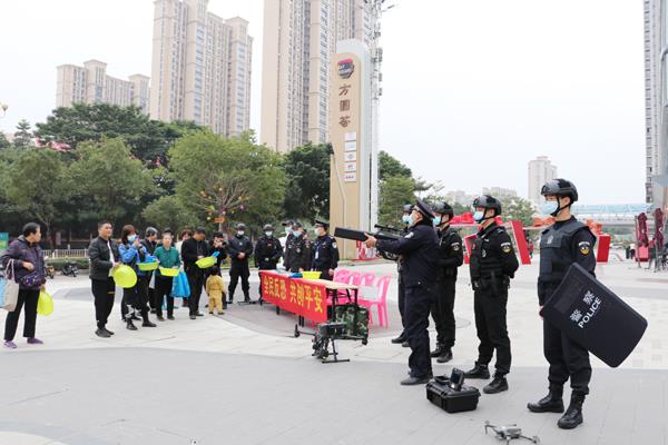 活动现场,民警们按照事前分工,紧密结合自身工作性质特点,通过向群众发放宣传册、利用无人机播放反恐宣传小知识音频、展示特警装备、与群众现场互动等形式,向周围群众开展反恐安全教育,同时紧扣“人民至上110,勇毅护航新征程”主题,宣传反诈、防范黄赌毒危害以及如何识别、防范新型违法犯罪的技巧妙招和法律知识等,近距离向群众展示特警日常工作中使用的警用装备,介绍大队在维护社会治安秩序、服务人民群众等方面的新举措和新成效,进一步提升公众安全意识,构建和谐警民关系。(郑晴)