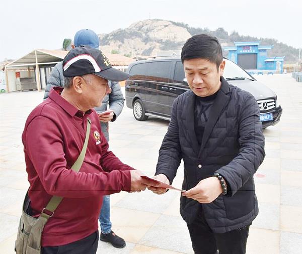 下午3时许,林玉美董事率队接连走访平安里、莲池澳沙滩等地,向在岛工作的台湾同胞赠送妈祖挂历,转达湄洲妈祖祖庙董事会的新年祝福。林玉美董事还为台胞们介绍了即将举行的湄洲妈祖祖庙2022跨年祈福活动,并邀请众人参加跨年活动。