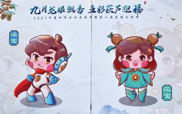 涵江龙眼吉祥物IP发布。龙眼吉祥物IP是以龙眼为原型,结合涵江区第十次党代会提出的“打造现代产业强区、建设生态宜居涵江”为主题设计的卡通形象。吉祥物为一男一女,男的取名为涵宝,其高科技机械风格体现了涵江工业产业朝向高新技术改造提升,形象结合龙眼主元素,搭配蓝色风格,是生态水韵涵江与现代产业涵江并重发展的体现。女的取名为江宝,其中龙眼、燕尾脊元素,搭配绿色风格,体现涵江绿水青山、历史文化风貌,足可见涵江生态宜居整体面貌。