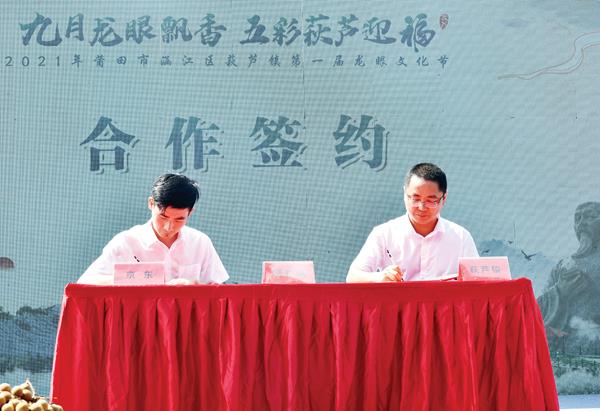 市人大常委会副主任蔡国萍、莆田学院党委副书记翁若平等出席龙眼文化节开幕式,并为五彩萩芦品牌揭幕。