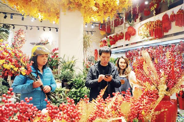 近几年,随着生活水平的提高,绿植花卉成为不少市民春节前不可或缺的年货。春节的临近,为了增加喜庆气氛,不少市民便开始选购鲜花来装点家居和送给亲朋好友。在市区东大路某鲜花店记者看到,前来选购鲜花、盆栽的市民络绎不绝。“每年的这个时候是我们销售的旺季,特别是红掌、蝴蝶兰、百合等寓意比较吉祥的花卉销路最好”。该店店员说。