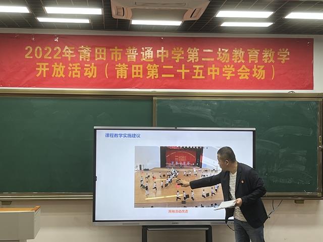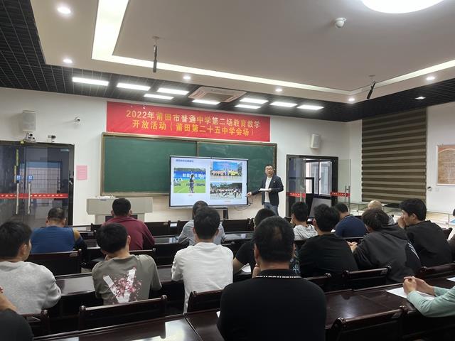 3月17 日上午,在莆田第二十五中学举办的市教学开放周上,省体育学科带头人、学校党支部书记林伟老师应邀做《洞察新课标之微调 优化体育教学设计》的讲座。来自全市各校三十多位体育界的老师聆听了讲座。