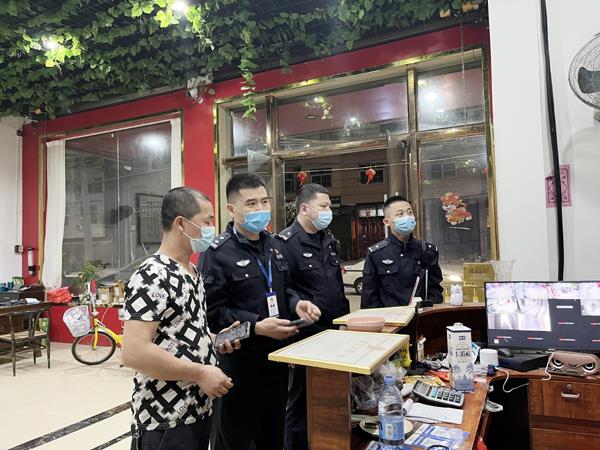 本报讯 为做好疫情防控工作,3月18日晚,盖尾派出所社区民警联合挂钩民警开展行业场所安全隐患排查和疫情防控检查统一行动。检查中,民警督促指导棋牌室、酒楼等聚集性场所按要求进行停业,并张贴疫情期间暂停营业标志,同时指导适宜营业场所严格落实进出人员扫码、登记、查验健康码、行程码等防疫措施,做好日常消毒工作。通过检查,发现个别场所仍存在疫情防控措施落实不到位,疫情防控主体责任意识不强等问题,当场督促立即整改。(陈婧)