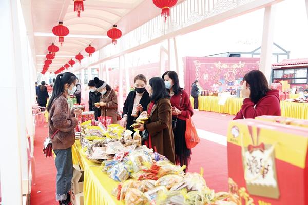 本报讯 大红灯笼、红地毯、琳琅满目的商品……1月26日,湄洲岛宫下码头集散广场洋溢着喜庆的年味,“2022年闽台乐购年货节”在这里举行,众多岛民和游客在各个摊位上驻足,选购心仪的年货。活动现场,粮油米面、酒类、饮料、海鲜干货、台湾小商品、节庆用品、文创产品等种类丰富的商品摆的满满当当,让岛民可以在家门口一站式购全年货。