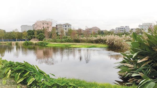 “湿地公园分为综合处理区、深度净化区、稳定出水区,净化主要靠植物、LID型生态沟渠、生态导流滤堤、人工水草、曝气复氧系统等措施。”杨腾权告诉记者,公园中共建有10个生态池进行水体修复,每个池塘种植着不同吸附能力的植物,利用土壤、人工介质、植物及微生物的物理、化学、生物三重协同作用,从而去除水中污染物和营养物,不仅净化了水质,也供养了植物。