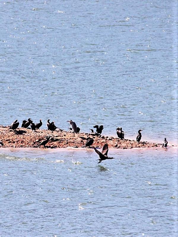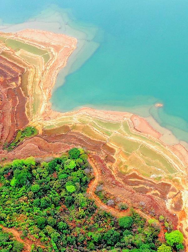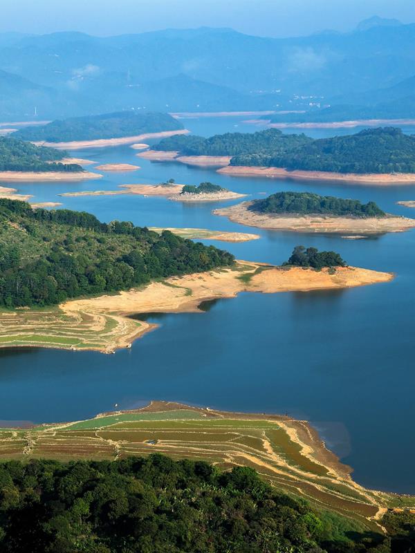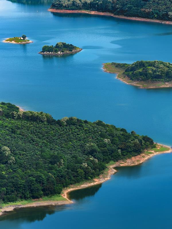 水位下降时,散落的小岛如碧玉般和盘托出,别有一番韵味。(摄影/许金珊)