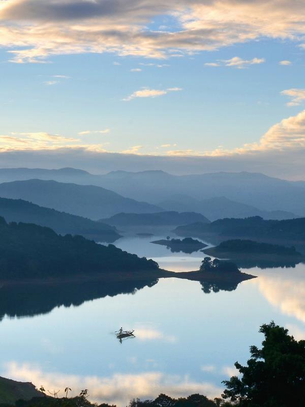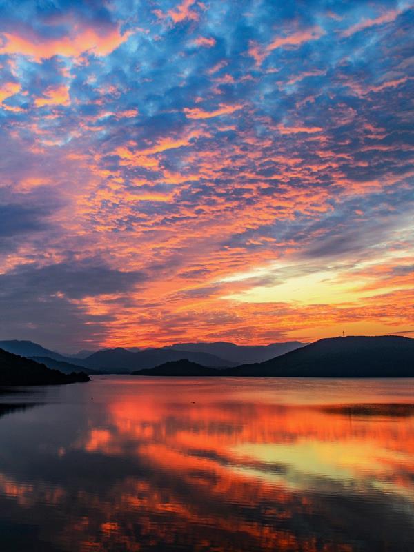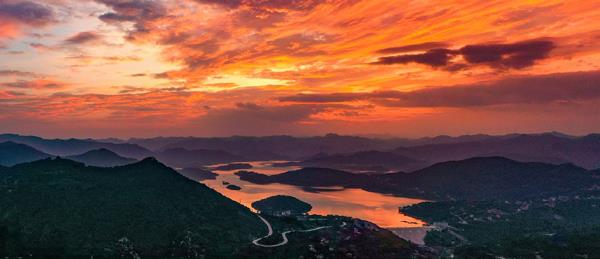 辉映在群山、树林、岛屿、湖水之间