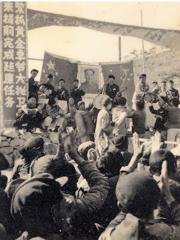 东圳水库指挥部召开誓师大会,干部群众纷纷表决心、力争提前完成建库任务,一场轰轰烈烈的大决战拉开序幕。(图片/莆田市东圳水库管理局提供)
