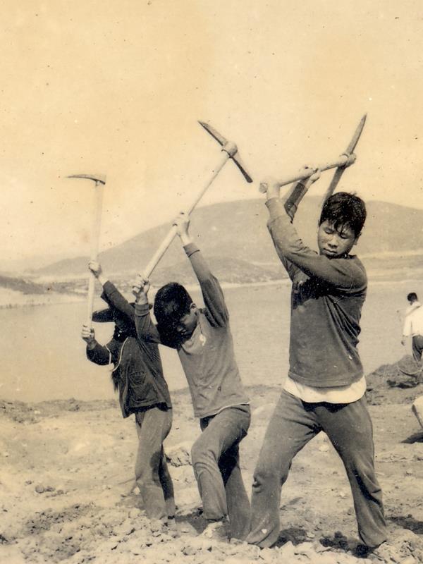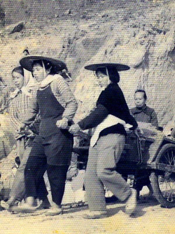 东圳水库建设者中,妇女占60%以上。她们移山筑坝走前头,涌现出闪电突击队、巧姐妹突击队、十仙女模范、女子打夯队等先进团队。(图片/莆田市东圳水库管理局提供)