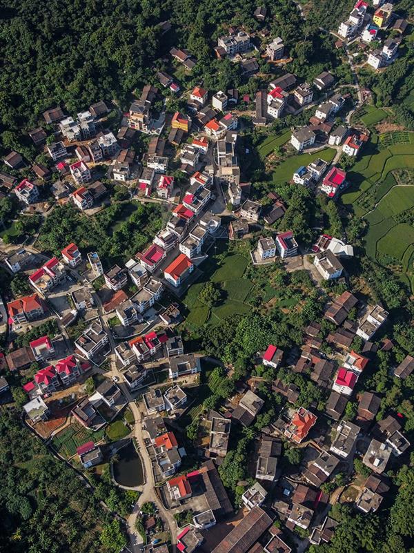 岭下村,位于东圳湖畔,是美丽库区移民示范村。走进该村,民居鳞次栉比,村道洁净,清渠潺湲,湖光山色相映成趣,满眸绿色,移步换景。(摄影/陈力雄)