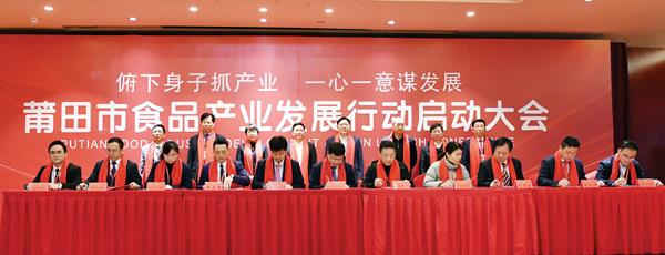 本报讯 2月8日上午,莆田市食品产业发展行动启动大会召开。市委书记付朝阳、市长林旭阳出席,并和市领导沈萌芽、林惠中、陈道成、张志宏,莆田学院副院长黄鹏飞共同按下启动按钮,见证项目签约。市政协副主席林玉瑞主持。
