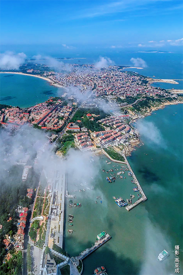 地处湄洲岛最北端,与文甲大屿山遥遥相对。形似壮牛之尾,没入海里,南面却极像牛首,与祖庙山紧紧相偎。这里三面临海,山峦起伏,层林叠翠。(摄影/蔡昊)