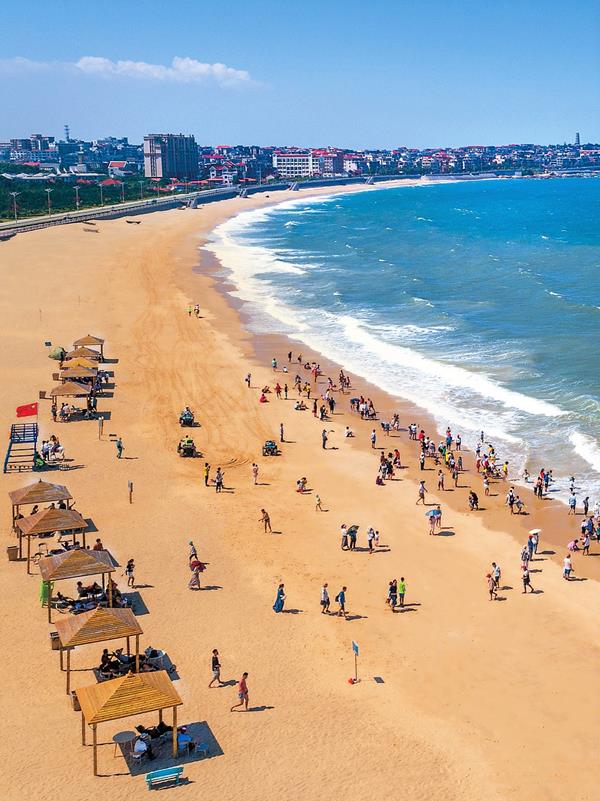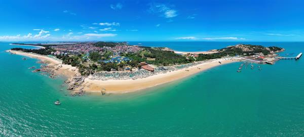 湄洲岛最长最迷人的沙滩,有“天下第一滩”的美誉,绵延3000米,纵深300~500米,坡度5%,呈波浪状缓缓斜入大海,是天然的海滨浴场和理想的避暑地。(摄影/陈良锦)