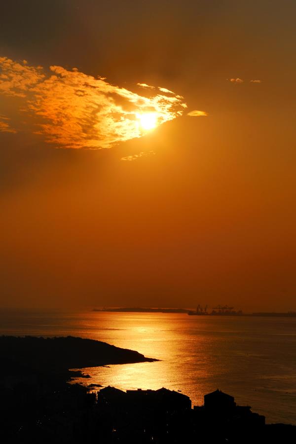 2014年4月,湄洲岛金尊妈祖(高3.23米,重323公斤,是全球第一大纯金妈祖神像)开光日,海面出现金凤凰祥云。(摄影/蔡昊)