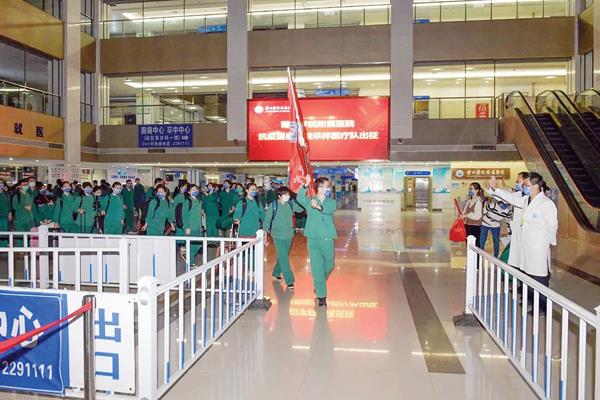 本报讯 疫情就是命令,白衣就是战袍。连日来,莆田学院附属医院闻令而动,选派234名医护骨干组成的抗疫应急医疗队,分批驰援泉州、仙游“疫”线。