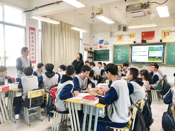 授课老师李蓉是高二英语备课组组长,多年来,她见证了学校教学模式的改革给学生带来的真实影响。“早在2014年,学校开始实施‘翻转课堂’教学模式,把课堂大部分时间还给学生。现如今,采用的是进一步升级的‘读思达’教学法,提前将导学案给学生预习,鼓励学生课上团队合作,自由发挥,老师则主要起到引导及总结作用。”李蓉告诉记者,这种教学模式她运用了3年时间,每个学生都有自己的学习报告,每周给予学生语言输出的机会,或用课件、或直接口语展示。在新的教学模式下,学生们变化很大,不仅打破了传统的“哑巴式”英语,还提高了逻辑思维能力、语言组织能力等各方面素养。