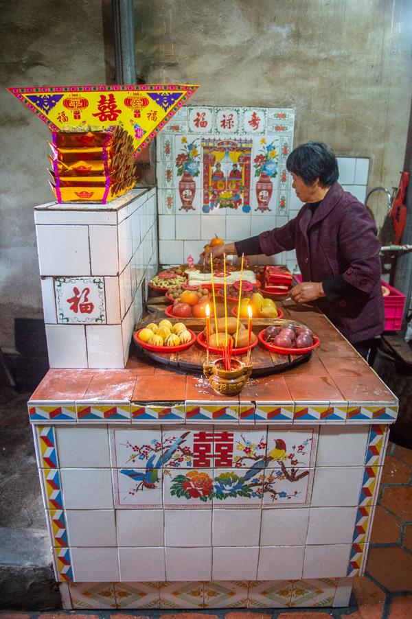 聚在灶头,虔诚“送灶公”,祈求上天赐福,保佑四季平安、丰衣足食。(摄影/蔡昊)