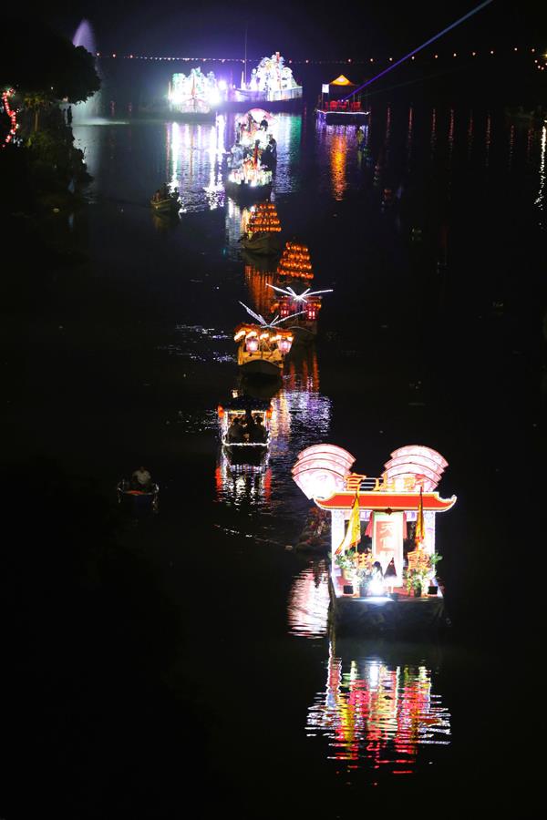枫亭为闽中重镇,为闽地南北交通枢纽及海上丝绸之路的中转站。宋代时仿照杭州夜西湖舟舫弹唱曲艺形式,将数艘龙舟拼接一起,上搭彩架。此后,集英亭六大宫“闰六龙舟水阁”就成为枫亭独特的民俗活动,代代流传。(摄影/朱福忠)