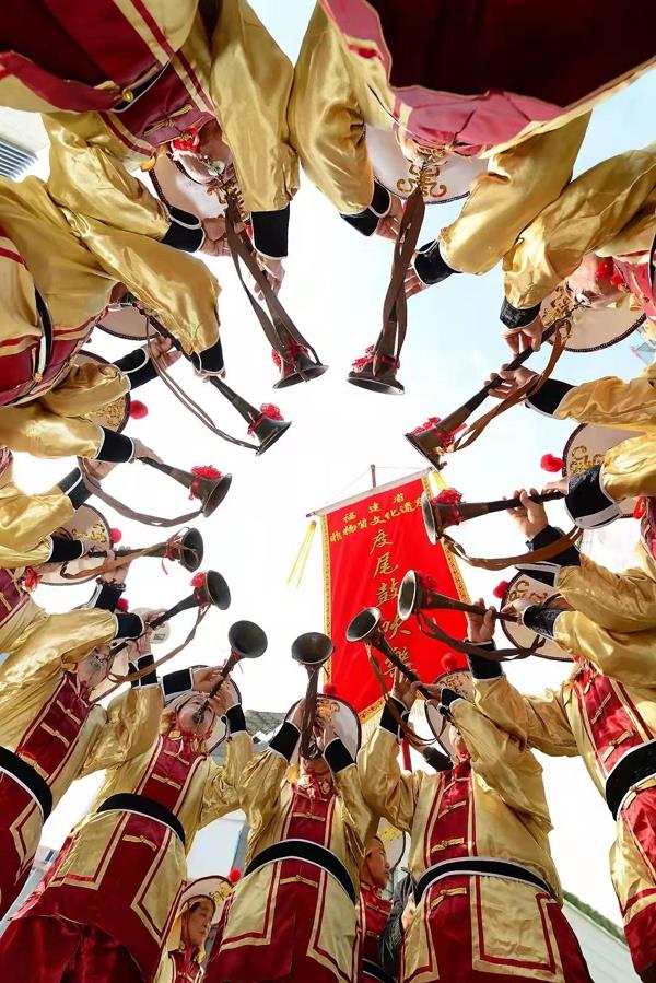 起源于北宋的仙游度尾鼓吹乐,将中原音乐文化与当地民间音乐融合在一起,因演奏时吹大唢呐和打大鼓而得名。是我省独具特色的民间古乐,在迎宾送客等大场面的开场和收场都要演奏“大鼓吹”。(摄影/张力)
