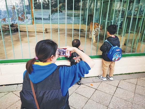 本报讯 “妈妈你看,大老虎”“老虎老虎,快往这边看”……近日,记者在凤凰山公园福祥动物园猛兽区老虎展区看到,有许多家长带着孩子在观看。“今年虎年,想着带孩子们来动物园看看老虎,增长他们的见识和胆识。”一位家长向记者说道。“趁假期带孩子们来看虎,沾沾虎年的喜气。”另一位家长表示。