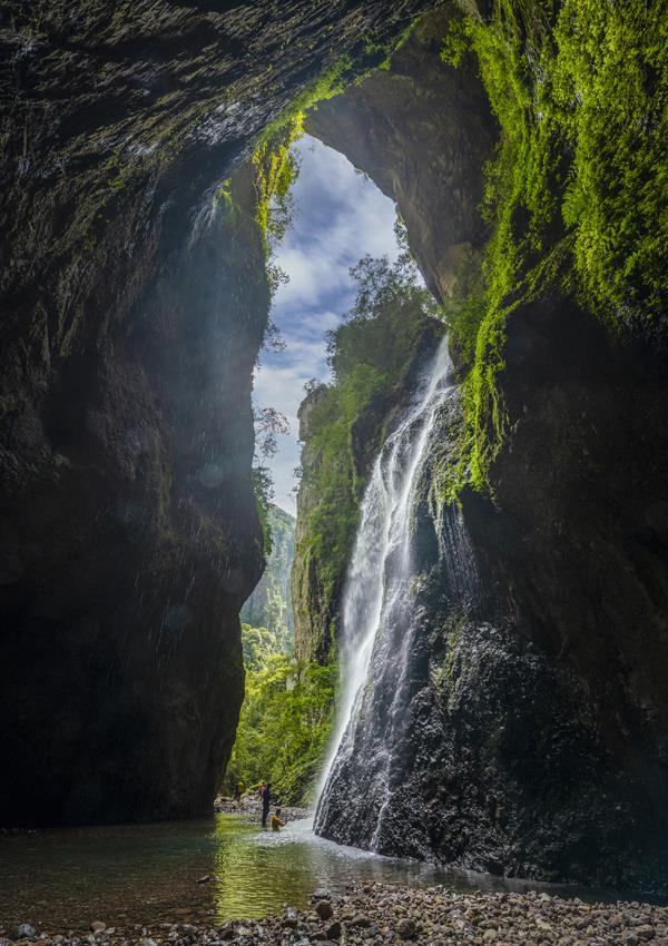 位于仙游西苑乡凤山村白沙溪,峡谷出口位于西苑、菜溪、社硎三个乡镇交界处。山谷内天然形成的夹缝,貌似一座巍峨的山被劈出了一条缝,刺刀峡谷因此得名。位于悬崖绝壁上的三个天然大溶洞,峻峭奇险,是勇者挑战岩降的绝佳去处。峡谷内谷幽阴冷,时而绿潭成串,时而清水潺潺,时而温柔可掬,时而粗犷撒野,溯溪而上富有挑战,其中最窄的一线天的峡谷宽度仅80cm,只容一人侧身挪过。(摄影/张力)