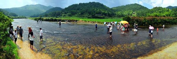 位于仙游县西苑乡与德化县交界的九仙溪上游,其平底基岩溪床可与宁德白水洋相媲美,被誉为世界上稀有的“浅水广场”。(摄影/张力)