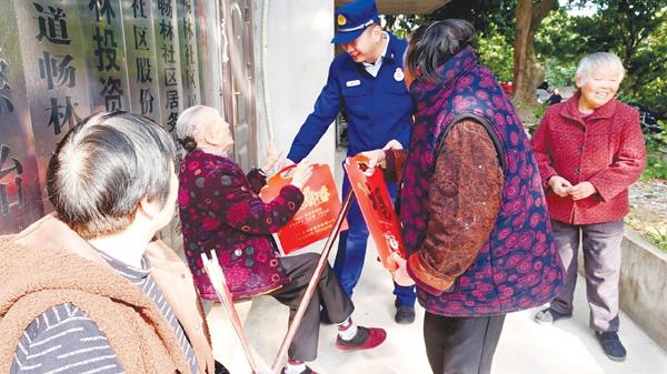 “奶奶您好,我们是荔城消防的宣传员,这是我们的消防春联和宣传图册,来您看,这上面说了……”“大爷,您平时出门前有没有检查电器?天气这么冷用取暖器了吗……”宣传中,该大队宣传人员从拉家常开始,询问老人日常生活用火、用电的情况,及时纠正不当之处,并拿出图文并茂的宣传图册,用通俗易懂的语言一一介绍消防知识,告诉老人平时注意用火用电安全,一旦发生意外第一时间拨打119火警电话。通过开展此次活动,进一步提高了辖区内孤寡、独居老人的消防安全意识,促使他们强化自身消防安全意识,认识到消防安全的重要性,及时消除隐患,远离火灾,为辖区内孤寡、独居老人撑起平安“保护伞”。 (时报记者 林锦堂 通讯员 陈斌)