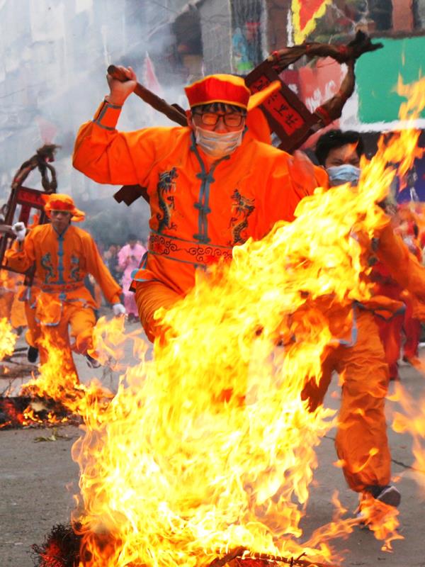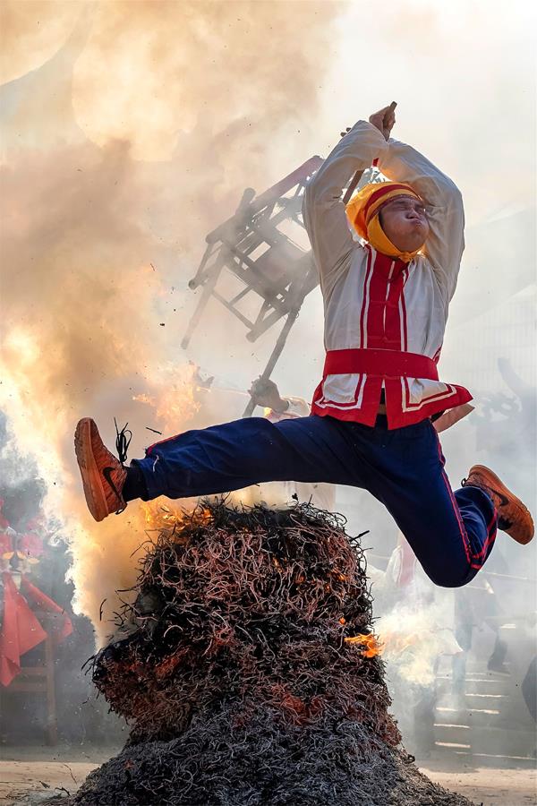 轮番跳火堆(摄影/郭劲瑜)