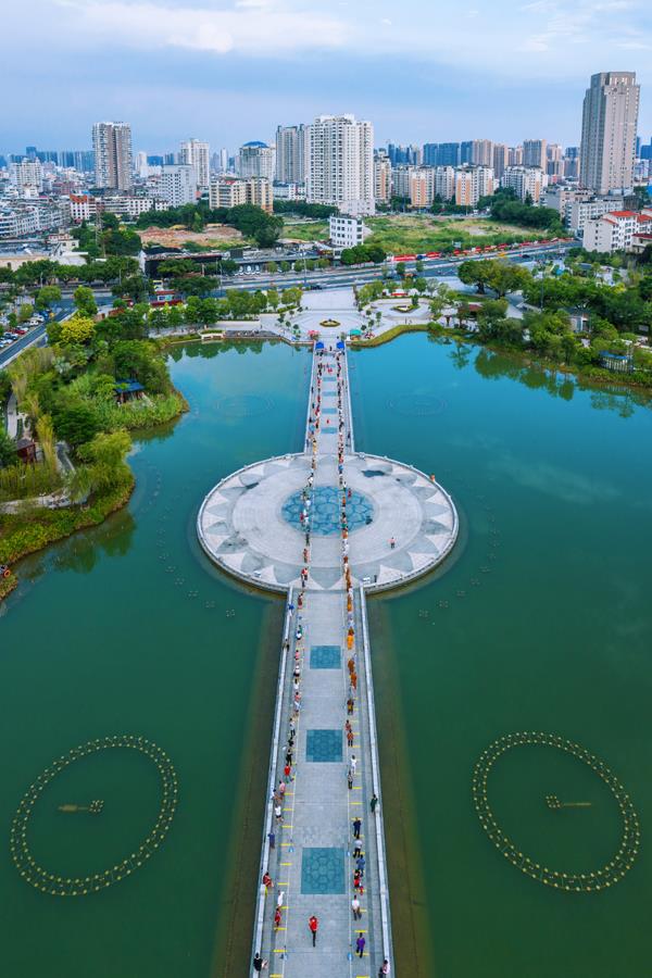位于广化寺前,以"佛教圣境、开莆来学"为主题,集旅游、休闲、活动功能为一体,园内2.4万平方米湖面,拥有湖心岛、普渡桥、曲桥等多个特色景点。(摄影/蔡昊)
