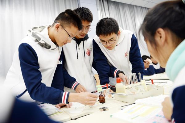 “‘三学三研’课堂教学模式追求的是‘点燃火焰’。”校长吴志明在接受记者采访时表示:“在课堂教学中,我们教师的角色是‘导学、助学、督学’。学生在教师‘三学’指导下经过‘自学自研、互学互研、深学深研’的‘三研’获取知识,提升能力,学会创新。”“自学自研”,以个人自主学习为基础,强调实践、体验、感悟的学习过程。“互学互研”,以小组合作学习为基础,将个人的学习行为有机融入到小组或团队的集体学习过程。“深学深研”,以问题作为学习的基础,完成一个由发现问题为起点,到解决问题并创造新问题为终点的学习过程。