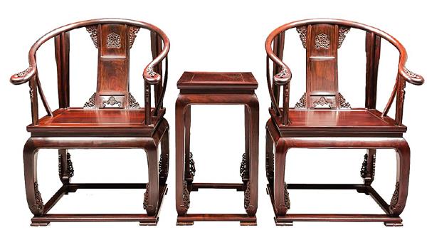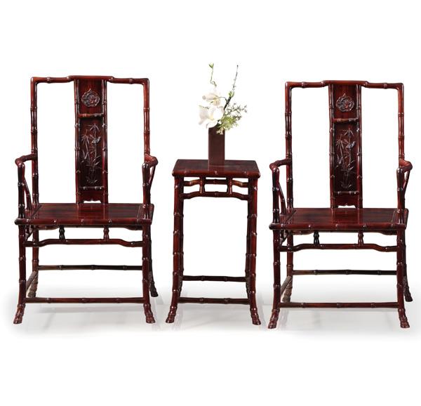 大红酸枝竹节官帽椅三件套(图片/陈俊辉提供)