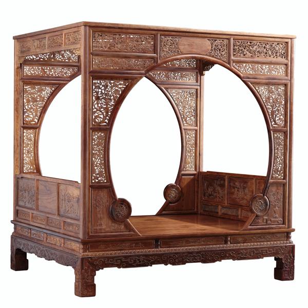 海南黄花梨双月洞门架子床(图片/仙游县工艺美术中心提供)