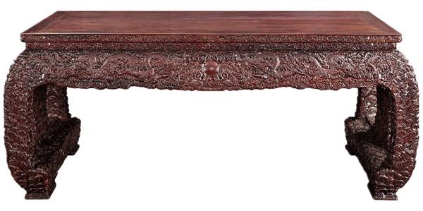 小叶紫檀清式双龙戏珠大画案(图片/黄福忠提供)
