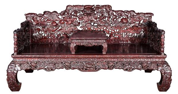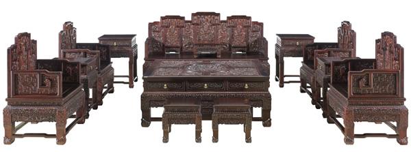 交趾黄檀水龙纹十三件套宝座沙发(图片/黄福忠提供)