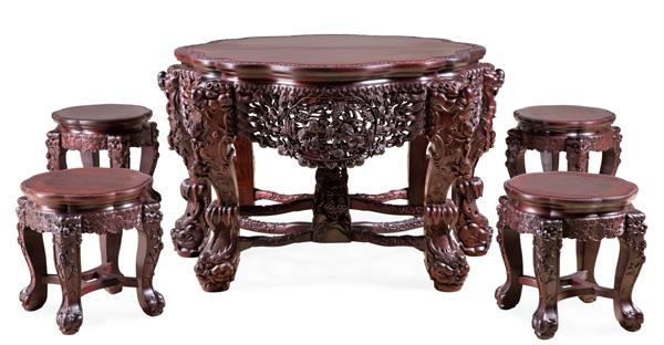 小叶紫檀梅花形兽头餐桌(图片/黄福忠提供)
