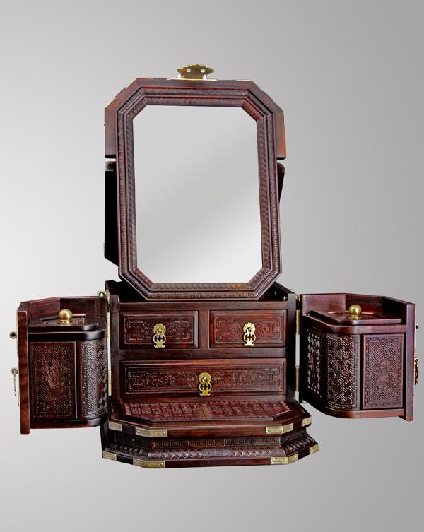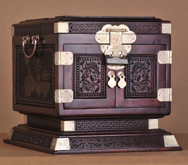 大红酸枝双凤朝阳梳装盒(图片/陈玉树提供)
