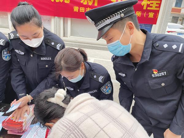 本报讯 近日,为进一步提高流动人口管理水平,东峤派出所组织民警、网格员开展流动人口服务管理宣传活动。民警在辖区流动人口较为集中的场所悬挂宣传横幅,向群众发放《福建省流动人口服务管理条例》等宣传材料,积极宣传流动人口相关法规及政策,手把手指导群众使用“福建治安便民”微信公众号和相关小程序进行登记申报,推广“线上办、网上办”,鼓励和引导流动人口自主申报,做好信息采集登记,不断增强流动人口的法律意识、安全意识和自我保护意识。 (黄雅莉)
