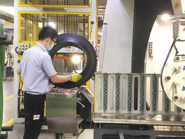 日前,记者在福建佳通轮胎有限公司的装货区看到,十多辆货车并排,工人正齐力将崭新的轮胎装上车,这些轮胎将通过厦门港销往欧洲。而在生产车间内,机械声不绝于耳,4条生产线均满负荷生产,产能利用率达98%以上。