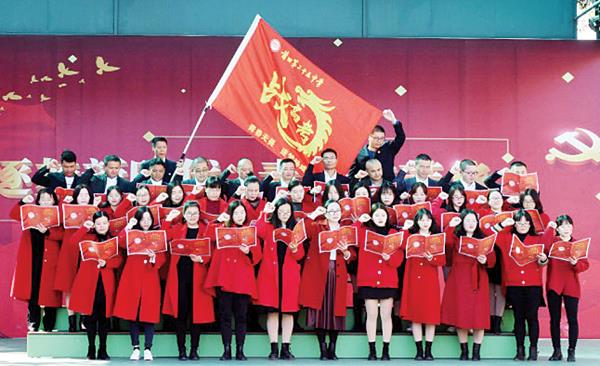 施志忠校长致辞,希望同学们以坚定的信心、自强的精神谱写新篇章。林伟书记授予高三年段“战高考”战旗,高三年段长林志扬授予高三各班战旗。在气氛热烈的“高三必胜”呐喊声后,全体教师、全体学生分别宣誓。