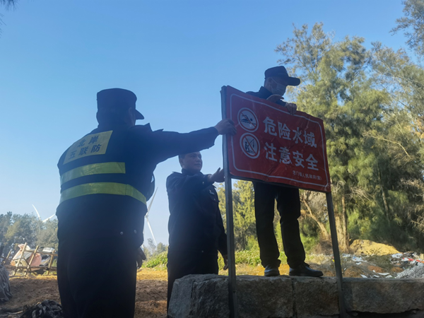 重点区域防范再强化。特别针对海岸线上的各个水门闸口及沙滩景点,通过物防建设,树立危险区域提示牌,加强巡逻力度,最大限度遏制意外事件事故发生。