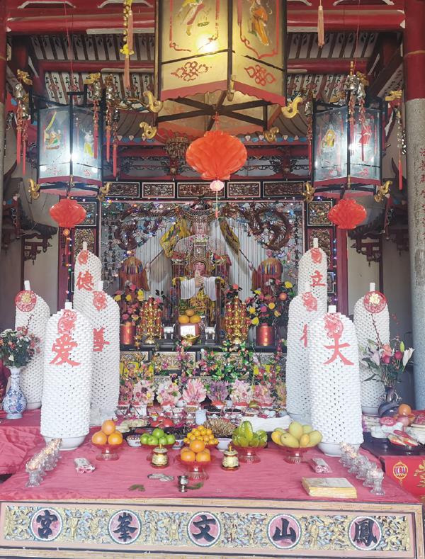 每年正月二十九,在风景秀美的凤凰山文峰宫,都要举行尾暝灯搭叠“凤凰妈祖糕塔”祈福迎祥。今年凤凰山文峰宫尾暝灯,在主殿妈祖神像前的供桌上排满香、花、果盒、馔盒、五果、六斋、茶、酒等,并搭叠八柱大型的凤凰妈祖糕塔,蔚为雄观。