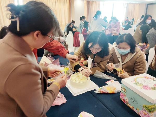 当天下午2:30,“魅力巾帼,绽放风采”湄台女职工插花交流活动在湄洲岛立德干部教育中心举行,在花艺师的讲解下,湄台女职工们充分发挥想象力和创造力,制作出一束束各具特色的花束,作为送给自己的节日礼物。随后举行的“烘出美味,焙感幸福”湄台女职工蛋糕DIY制作活动,大家认真地根据自己的想法装点蛋糕,有的在上面写上“女神节快乐”的字样,有的用水果摆出各种造型,在场的女台胞还在蛋糕上写下“两岸一家亲 喜迎二十大”的字样,在大家的巧手下,别具匠心的蛋糕一一成型,最后大家一起分享自己做的蛋糕,现场一片欢乐的海洋。
