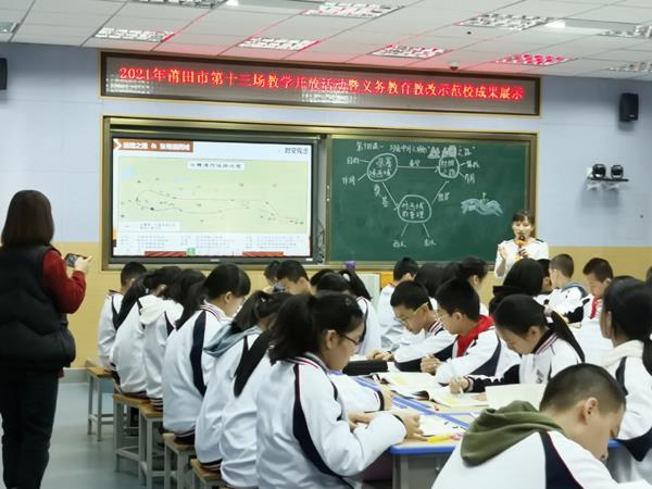 黄世举介绍:2017年,擢英中学成为福建省义务教育教改示范性建设学校,自2018年推行高效课堂建设以来,这样的高效课堂已常态化。